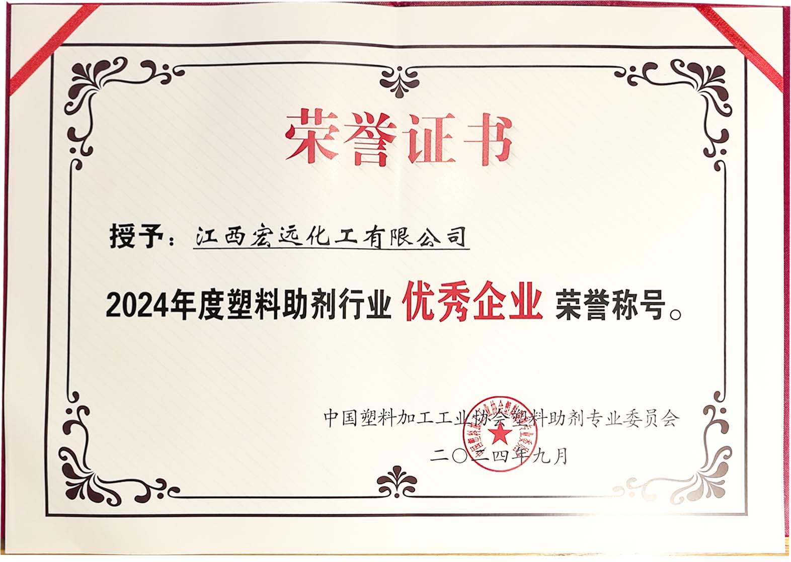 喜訊!江西宏遠化工榮獲2024年度塑料助劑行業優秀企業榮譽稱號。
